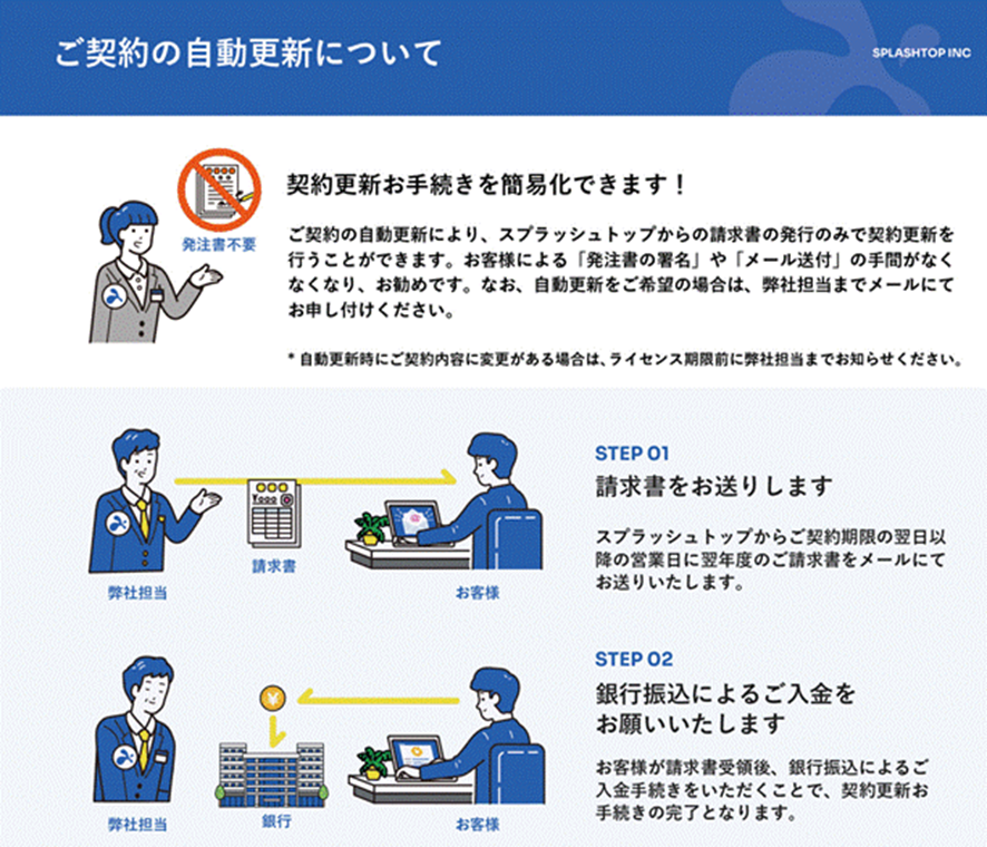 *自動更新をお申込みの場合、翌年度の更新時に発注書は不要となり、次回ライセンス開始月の月初めに請求書をお送りいたします。詳細はこちらからご確認ください。
